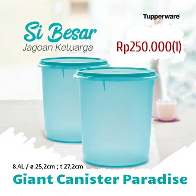 Harga giant canister tupperware 1pcs terbaru jika anda ingin membeli giant canister tupperware 1pcs namun masih bingung dengan harga yang ditawarkan berikut ini adalah daftar harga giant canister tupperware 1pcs murah terbaru yang bersumber dari beberapa toko online indonesia. Giant canister merupakan toples tupperware dengan kapasitas 8 4 liter cukup besar sebagai wadah menyimpan. 082127888190 pin bb. Baru dikirim pakai ka.