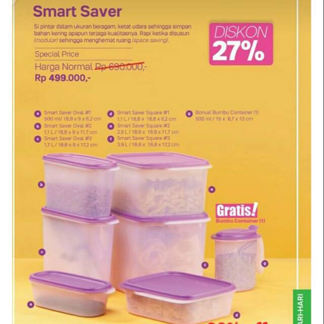 Smart saver indonesia maju 10 28 am 0. Berbagai pilihan produk inovatif baru dengan warna baru dan printing baru. Katalog harga tupperware smart saver terbaru dan termurah pastinya saat ini ini anda sedang mencari harga tupperware smart saver paling baru dan termurah di tahun.