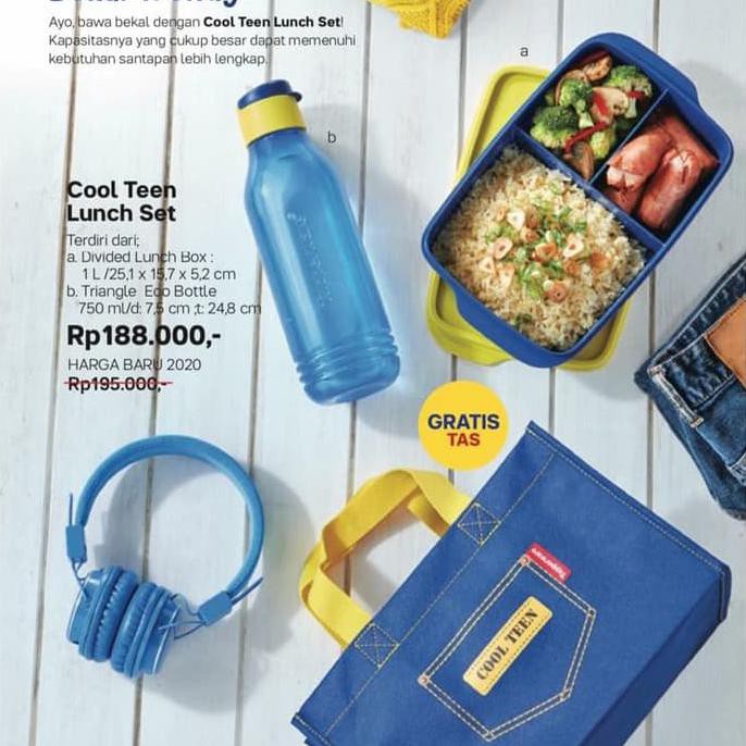 Tupperware small summer fresh 2pcs kotak makan serbagunarp59 800. Tupperware barbie lunch set music with giftrp114 800. Tupperware lolly tup kotak bekal sekat. Ada yang satu paket dengan botol minum sendok garpu dan tas ada pula yang hanya dilengkapi tas saja.