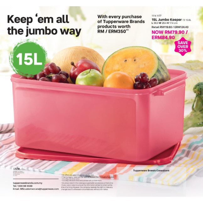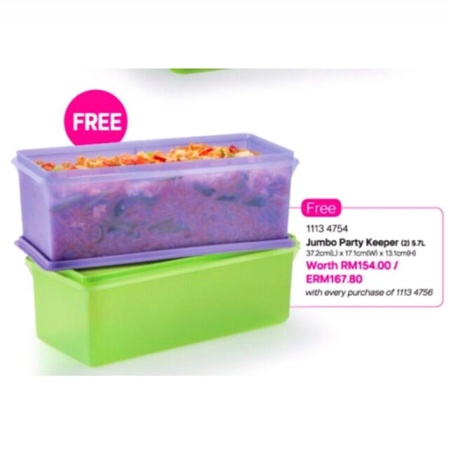 Deskripsi jumbo modular keeper 10l toplestupperware dengan kapasitas besar. Price list of malaysia tupperware jumbo keeper products from sellers on lelong my. Tupperware jumbo modular keeper grosir ok punya harga katalog rp 300 000 harga setelah diskon rp 185 000 produk multi storage ini memiliki kapasitas liter yang dapat menyimpan barang dalam jumlah banyak. Brand tupperware tidak hanya menyediakan produk perlengkapan makanan dan minuman namun juga menyediakan peralatan rumah tangga lainnya yang terbuat dari plastik seperti wadah penyimpanan wadah penyajian dan beberapa peralataan dapur.