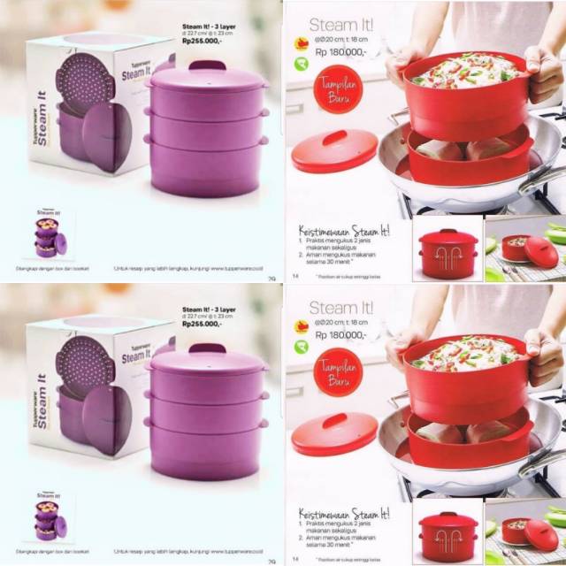 Harga tupperware steam it merah 2 susun rp170 000 harga tupperware cherry steam it kukusan 3 susun warna cherry rp199 000 harga alat pengukus makanan tupperware steam it 2 layer rp215 000. Tupperware steam it 3 layer kukusanrp199 800. Tutup steam it tupperwarerp42 500. Steam it 1105 9545 a steamer enhanced to make perfectly healthy meals.