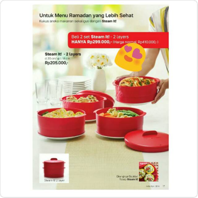 Harga kukusan steam it merah ini hanya rm52 90 untuk lebih murah boleh hubungi saya ada dua lapisan sesuai untuk digunakan serentak letak benda yang agak lama dimasak di bahagian bawah dan benda yang mudah masak seperti sayuran di bahagian atas. Steam it tupperware alat kukusrp125 000. Dapat digunakan untuk mengukus hidangan apapun mulai dari main course hingga appetizer. 20 cm t.