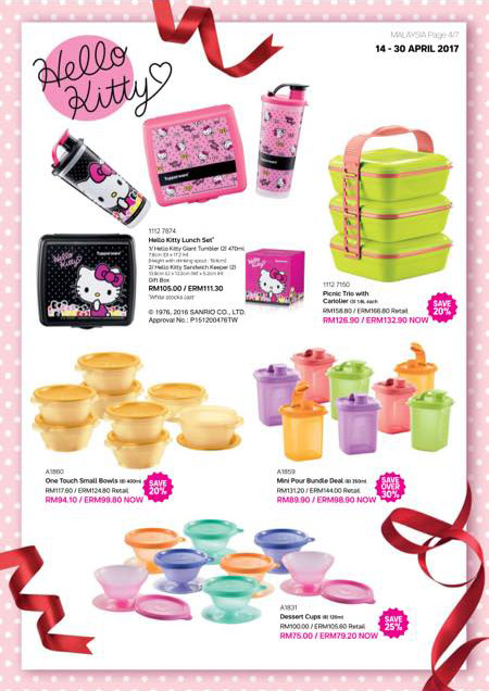 Hello kitty set tupperware promo april 2017. Beranda artikel yang ditandai katalog promo tupperware april 2017 tags katalog promo tupperware april 2017. Rp 300 000 rp 530 000. Untuk mendukung si kecil mulai makan dan minum sendiri koleksi hello kitty set lucu ini akan menemaninya agar bisa makan lebih lahap. Tupperware hello kitty set wadah makan dan botol minum dengan karakter hello kitty ini bisa anda dapatkan di katalog promo tupperware september 2017.