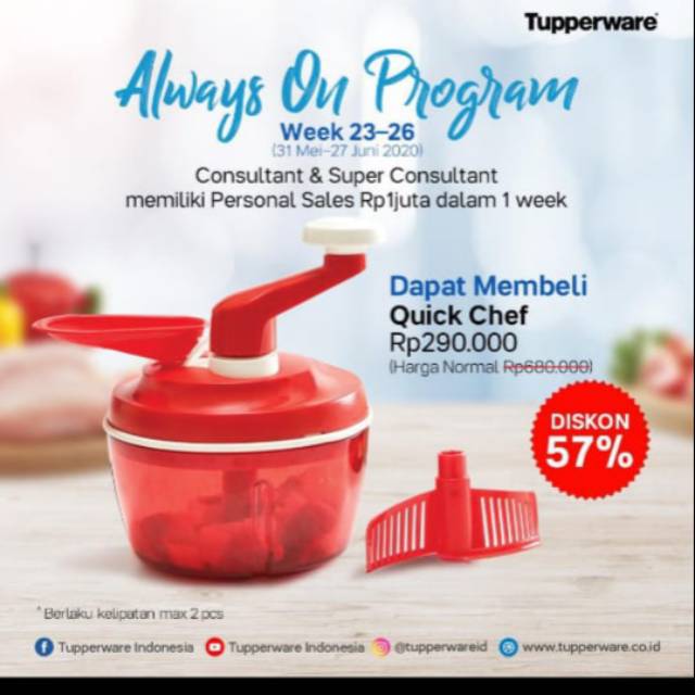 Produk asli dan garansi seumur hidup. Beli quick chef sekarang. Pembayaran mudah pengiriman cepat bisa cicil 0. Tupperware menghadirkan tupperware quickchef sebagai inovasi cerdas alat pengolah bahan makanan tanpa listrik.