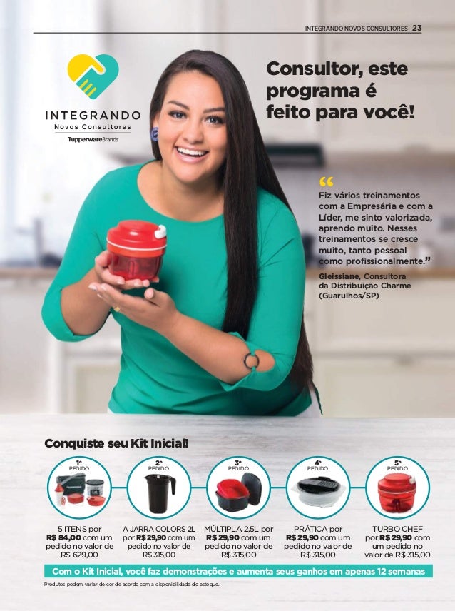 Também compartilhamos informações sobre o uso do nosso site com nossos parceiros de mídia social publicidade e análise. Programa integrando corações nova consultora tupperware. O kit poderá ser pedido a qualquer momento a partir do momento que a aprovação da conta de consultora for confirmada via e mail. O valor fechado do kit e de r 598 00 mas para quem não pode pagar toda essa quantia logo de cara pode se permitir que a marca desconte r 80 00 da comissão das vendas todos os meses até a quitação da compra a.