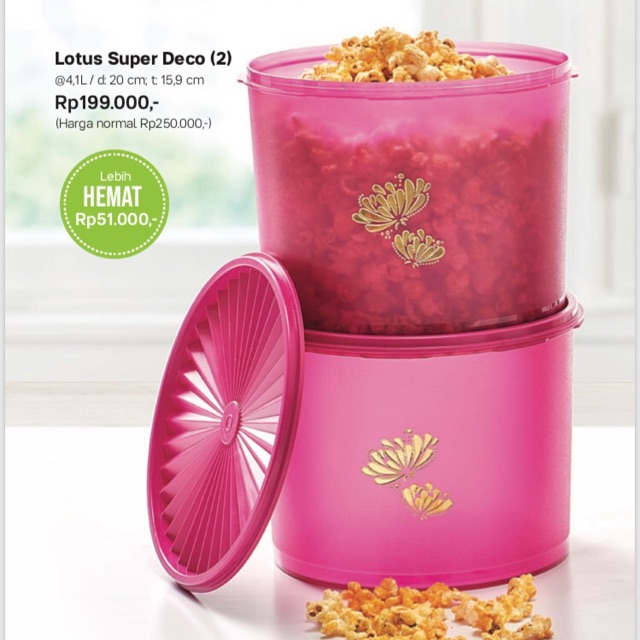 Produk ini merupaan set koleksi toples tupperware yang dapat digunakan sebagai wadah aneka makanan ringan dalam berbagai ukuran. Lotus super deco tupperware promo april 2018 ukuran besar jumbo. Beli lotus deco online terdekat di berkualitas dengan harga murah terbaru 2020 di tokopedia. Ukuran 4 1 liter isi 2pc harga rp 250 000 kedap udara membuat snack anda semakin awet dan terjaga kerenyahannya.