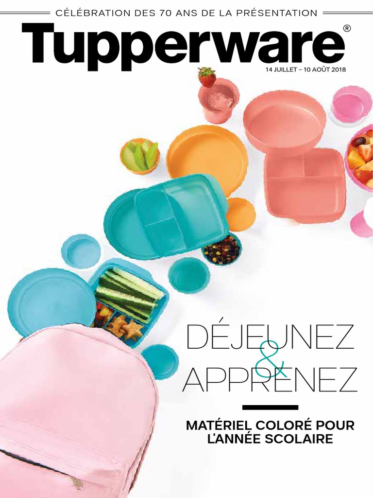 S il y a bien un catalogue que les amateurs de bons plats et de bonnes affaires ne peuvent pas rater c est bien le catalogue tupperware. Parmi les produits présentés on retrouve des services de table des boîtes pour la conservation la congélation le rangement la cuisson au micro ondes le réchauffage au micro ondes les pâtisseries ou encore pour la cuisson au four et bien entendu les.