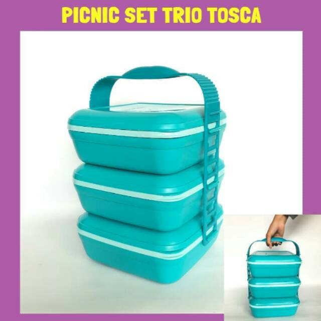 Picnic set trio tosca tupperware. Picnic set trio tupperware bagi tuppy lovers yang sedang mencari rantang tupperware special di bulan dalam katalog tupperware promo 2017. Tupperware picnic set trio merupakan penawaran terbaik hanya ada di bulan maret 2016. Picnic set trio harga rp. Terdiri dari 3 buah wadah berkualitas agar anda dapat membawa berbagai macam makanan sehingga akan ada banyak pilihan saat santap bersama.