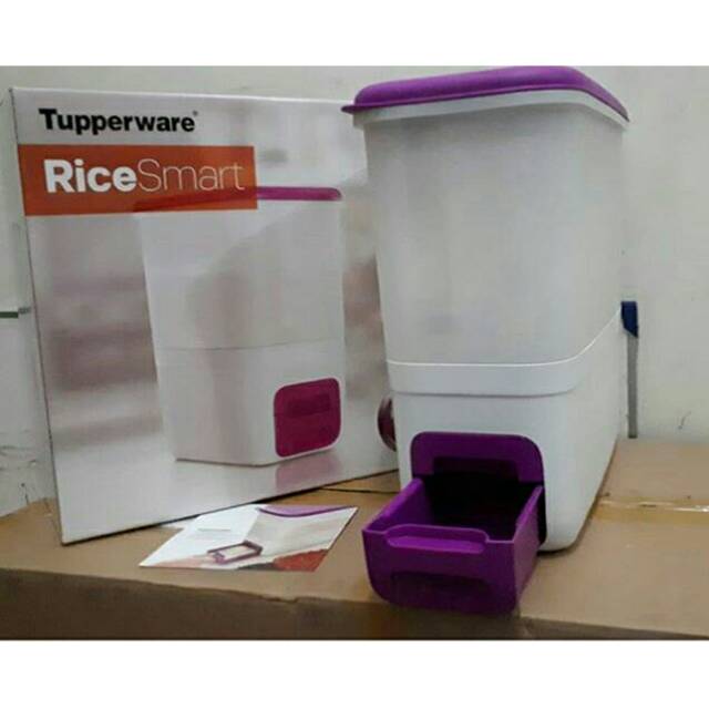 Rice smart tupperware salah satu inovasi produk tupperware yang praktis untuk menyimpan beras dengan kapasitas yang cukup besar yaitu 10 kg penyimpan beras tupperware ini didesain sedemikian rupa agar beras yang disimpan tetap terjaga.