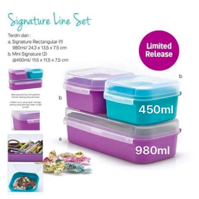 Signature rectangular set tupperware. You can use for tea coffee or for other things like elbow macaroni or other pastas rice candies baking mix etc. Tupperware system drawer signature rectangular. Signature set tidak hanya bisa untuk makanan tapi juga bisa membawa botol berisi minuman. All productstupperware products don t just make your life easier and more enjoyable they re also designed to help reduce impact on our environment by providing reusable and durable solutions that help minimize single use plastic and food waste.