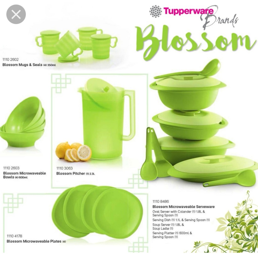 Sweet blossom hijau tupperware. Blossom saucy dish with spoon 1 e. Tupperware sweet blossom set blue or green 12pcs shopee malaysia. 2 3l 22x10 3 cm seri eleganzia akan mempercantik hidangan anda dengan desain yang elegan dan berbahan berkualitas. 9609z n tva intracommunautaire.