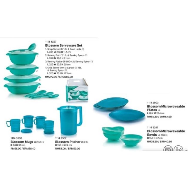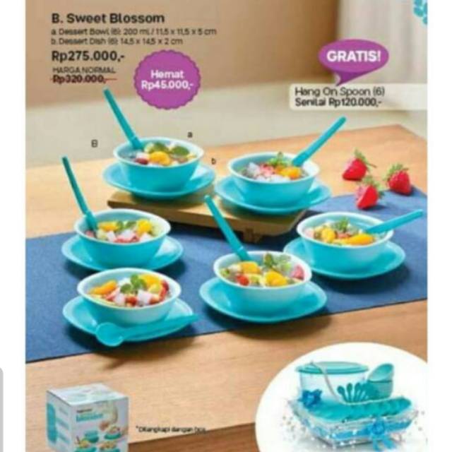 Harga rp 275 000 khusus promo bulan november 2017 turun harga menjadi rp 22. 14 5 x 14 5 x 2 cm dessert bowl digunakan sebagai wadah. Tupperware sweet blossom set blue or green 12pcs shopee malaysia jual promo tupperware blossom set kota medan allshop tantan. 200 ml 11 5 x 11 5 x 5 cm b.