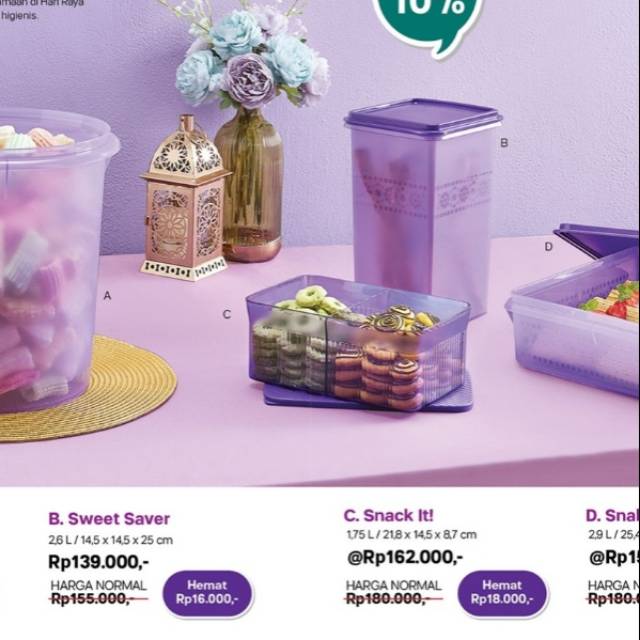 Tupperware mosaic sweet saver ungu lily. Beli tupperware saver online berkualitas dengan harga murah terbaru 2020 di tokopedia. Tersedia dalam warna ungu yang mewah dan. Pembayaran mudah pengiriman cepat bisa cicil 0.