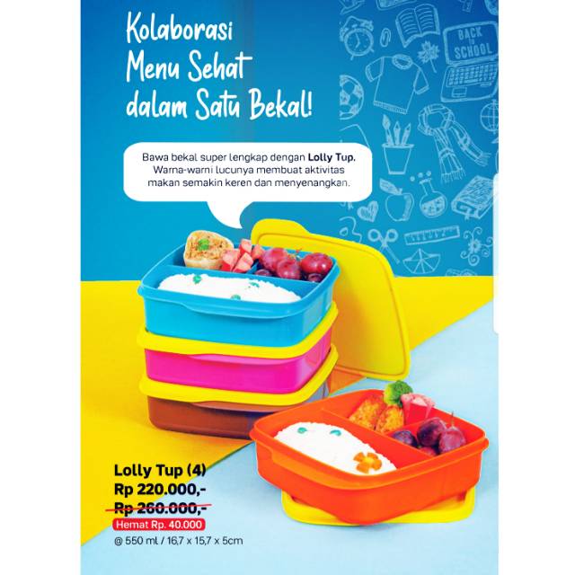 Salah satu produk tupperware yang cukup banyak diminati adalah tempat makan tupperware atau lunch box atau meal set tupperware. Lollytup wadah bekal tempat makan lolly tup loli tub t lolly tup kotak bekal lunch box 1 dan at lunch box ready adalah kotak bekal tupperware populer yang bisa didapatkan secara online. Produk tupperware ini sangat banyak digemari karena sangat bagus dan praktis salam menyimpan makanan baik untuk tempat makan anak anak remaja dan dewasa baik untuk tempat roti atau makan siang di kantor atau sekolah. Tupperware botol minum anak eco bottle flip tali 310 ml.