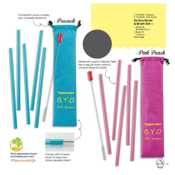 Pair with the eco straw set and you re ready for anything. It also has a speciality the tupperware water bottle. The innovative needle tip on the washable straws allows for smooth gentle sipping while the versatile straw length allows. Reusable straw p 20cm straw brush p 24cm cutlery 1set warna random 15 7 2 4 cm pouch.
