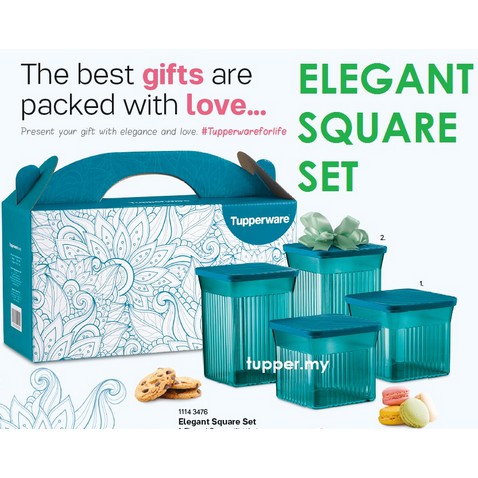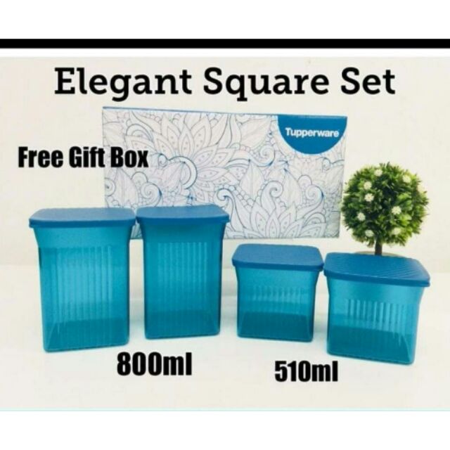 Tupperware elegant square set. Elegant square set 1. Exclusive purchase snack it 1 1 75l during this promo period. 1 elegant square 510ml 2 pcs l 9 9 w 9 9 h 8 8 cm 2 elegant square 800ml 2 pcs l 9 9 w 9 9 h 13 4 cm 3. Elegant square 2 510mlelegant square 2 800mlgift box.