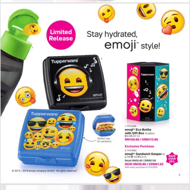 Add to wishlist 0 tupperware emoji eco bottle with gift box 4 500ml lynn2u. 1 eco bottle 2 500ml. Jadi ahli dapat 2. Tupperware limited edition emoji emoji eco bottle 500ml.