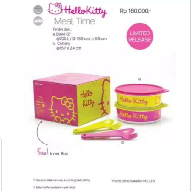 Tupperware hello kitty meal time. Tupperware cool n chic tas cokelat hijau. Tupperware hello kitty meal time tempat makan multi colour. The hello kitty items are now available in all tupperware brands branches nationwide but hurry because they will be available for a limited time only. Hello kitty meal time promo tupperware april 2016 promo april 2016 edit.