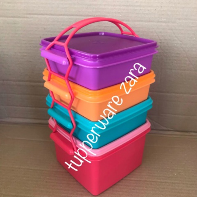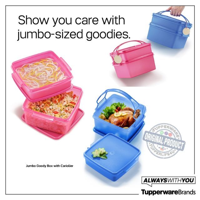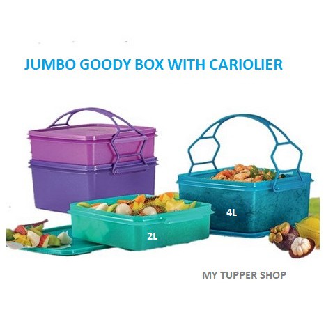 Rm 113 50 rm 74 90. Tupperware goody box 2pc tupperware boxes with carolier dimensions. Pack up to four different types of food in this colourful goody box that features a handy cariolier for easy carrying. 11152817 jumbo goody box with cariolier pink.