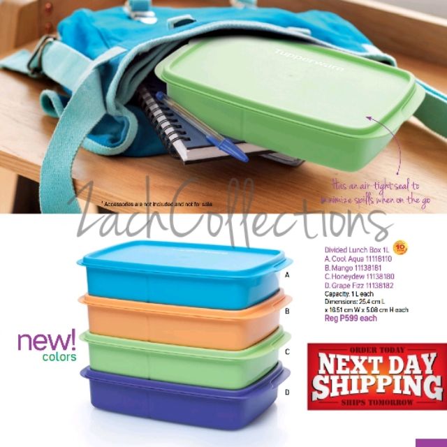 Tp 860 t187 tupperware premier lunch including bag with two bowls one tumbler and one square box allows you to pack a complete lunch 4 1 out of 5 stars 317 24 70. The tupperware lunch box dimensions are 22 4 x 15 x 8 cm h and it comes in black with a coloured divider. Compartiments pour transporter différents aliments. Hello kitty lunch box tupperware chopsticks storage fork 65 33 20 00 shipping make offer hello kitty lunch box tupperware chopsticks storage fork tupperware divided lunch box raddish brand new 17 19 25 07 shipping make offer 24 50.
