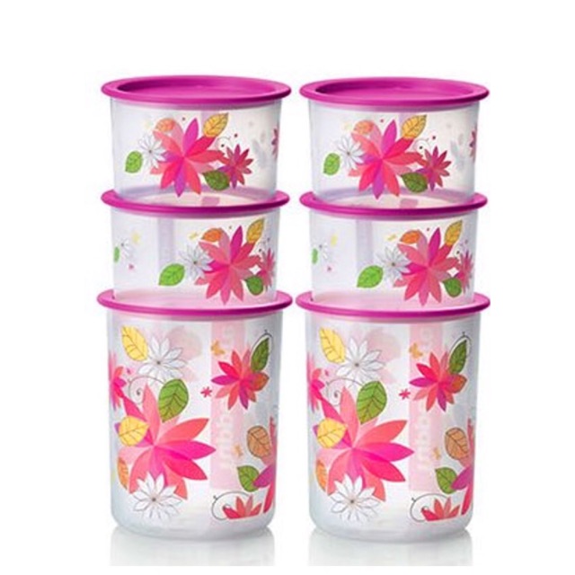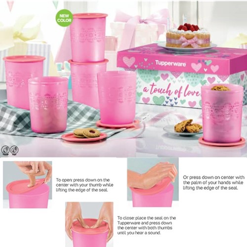 One touch mosaic canister junior 1 25l 2 one touch mosaic canister small 2l 2 retail price. Tupperware s one touch air tight containers. New pink tupperware one touch canister set of 2 containers. Pink blossom soup server 1 1 8l soup ladle 1 pink blossom legacy saucy dish 1 1 1l serving spoon 1 pink blossom oval server 1 1 8l serving spoon gift box free petit soup server 1 1 2l with deep serving spoon 1 worth rm54 10 erm57 20 with every purchase of 11131553 exclusive purchase.
