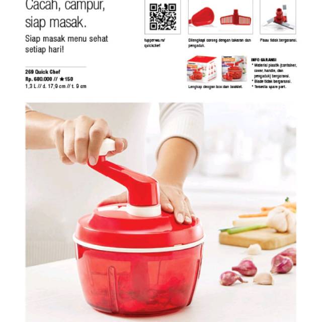 Tupperware menghadirkan quick chef sebuah produk inovasi alat pengolah bahan makanan serbaguna tanpa listrik yang nyaman dan mudah untuk digunakan gampang dibersihkan serta mampu menghemat lebih banyak waktu saat memasak di dapur.