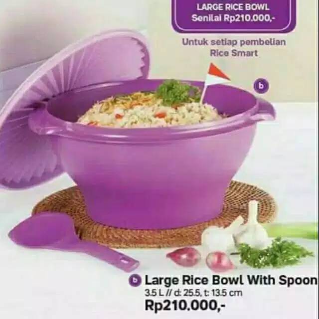 Promo tupperware large rice bowl with spoon ungu promo agustus ready. Large rice bowl tupperware merupakan produk yang ada dalam katalog promo tupperware juli 2017. Tupperware indonesia senantiasa menyajikan promo pilihan terbaik untuk melengkapi kebutuhan tuppy lovers. Large rice bowl set 3 5l tupperware ungu purple wadah nasi tempat sajirp119 900.