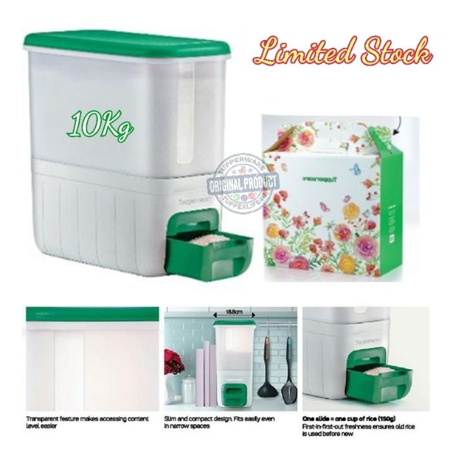 Jolly rice dispenser can fit up to 25 kg of rice 680 00. Tupperware rice dispenser. 11143606 ricesmart 10kg rice dispenser green whatsapp. A must have for every home the ricesmart preserves the freshness of rice with the first in first out rotation method to nourish families at every meal.
