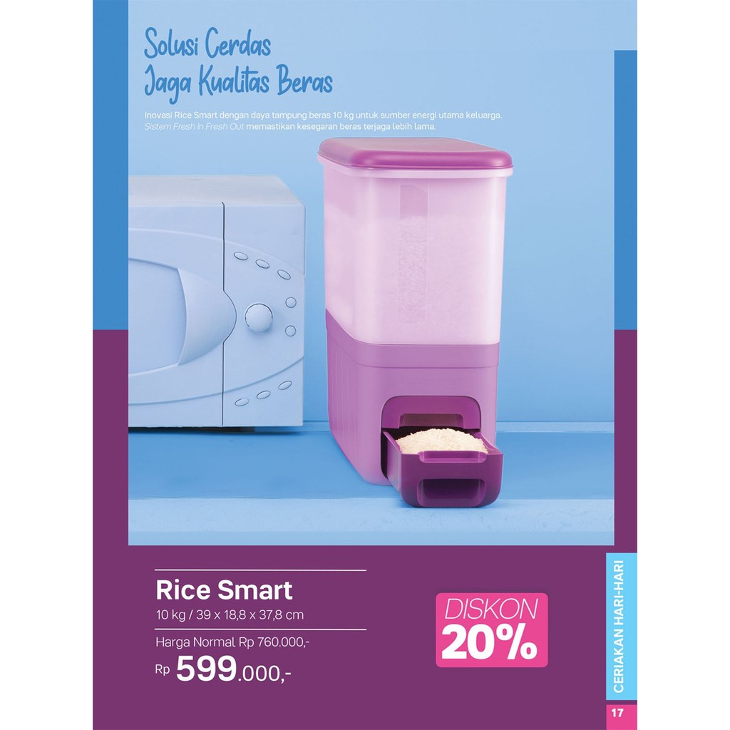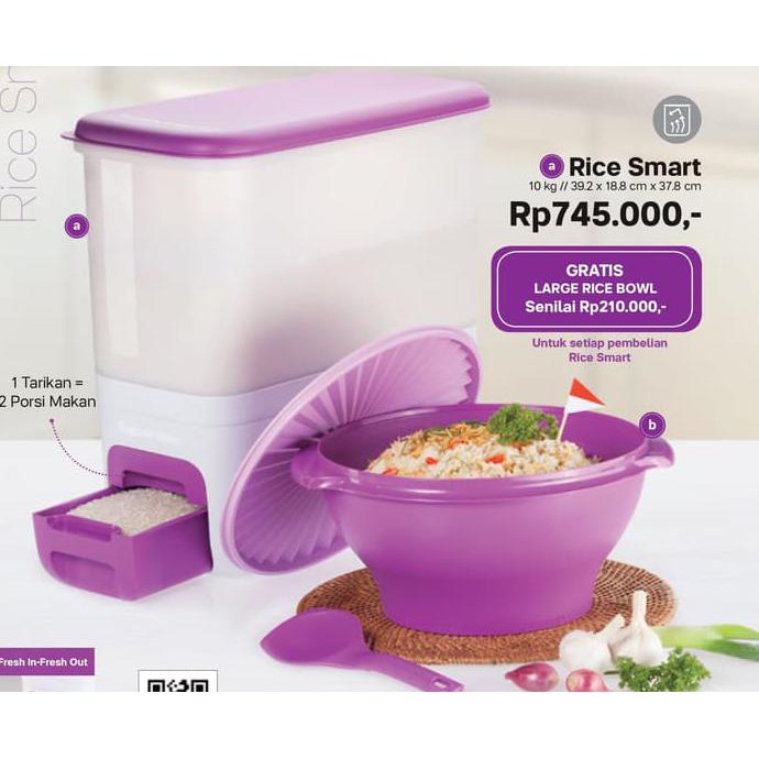 Tupperware rice smart rm 308. Tupperware tv rice smart purple. Desain yang compact dan ramping dapat diletakkan langsung di atas meja dapur tampilan yang modern dan elegant menyempurnakan dapur anda dengan sistem fresh in fresh out memastikan agar beras anda selalu terjaga kesegarannya. Rovega premium rice wise dispenser beras maroon 5 kg maroon.