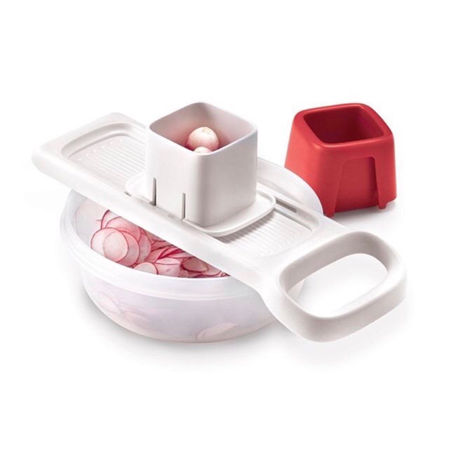Facebook twitter linkedin reddit tumblr google pinterest vk email. It s easy to use the speedy mando on your countertop cutting board serving plate platter or directly over your favourite tupperware product to cook in. Latest recommended tupperware product. The mandoline food slicer can be used on top of a bowl countertop and cutting board.
