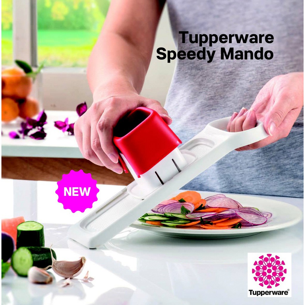 Tupperware speedy mando price. It s easy to use the speedy mando on your countertop cutting board serving plate platter or directly over your favourite tupperware product to cook in. Meet your new slicer for the kitchen. Aman karena speedy mando dilengkapi dengan plunger penekan dan food guider wadah bahan sehingga aman melindungi tangan dan semakin nyaman digunakan. Tupperware speedy mando parutan serba guna.