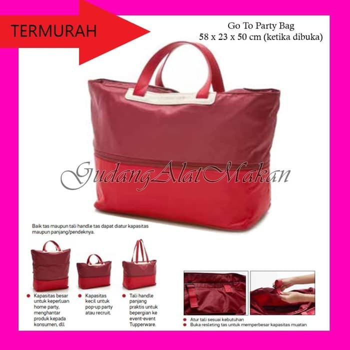 Tupperware tas merah besar. Tas tupperware ini berukuran agak besar dan dapat digunakan untuk apapun misalnya ketika ada acara piknik dengan keluarga. Cocok untuk situasi apapun terutama saat anda sedang harus membawa lebih banyak barang keperluan anda. Clutch bag tas wanita berukuran kecil memanjang dan tidak bertali. Brand tupperware tidak hanya menyediakan produk perlengkapan makanan dan minuman namun juga menyediakan peralatan rumah tangga lainnya yang terbuat dari plastik seperti wadah penyimpanan wadah penyajian dan beberapa peralataan dapur.