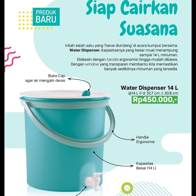 Produk water dispenser tupperware tersedia ukuran 8 liter aau 14 liter yang cocok untuk digunakan dalam acara keluarga baik di dalam rumah atau di bawa piknik atau pulang kampong. Produk botol minum dari tupperware menjadi solusi untuk memenuhi kebutuhan tubuh akan air putih minimal empat gelas setiap hari. Botol air minum tempat air minum lion star 1000 ml 1 liter bpa free rp14 000. Tersedia beberapa macam warna yang sangat menarik.