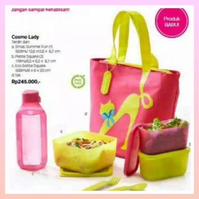 Pembayaran mudah pengiriman cepat bisa cicil 0. Warna dasar seperti tupperware ungu putih dan pink adalah warna terpopuler untuk botol minum saat ini. Tak hanya berkualitas tempat makan tupperware hadir dengan beragam pilihan bentuk dan ukuran yang juga dengan beragam pilihan warna menarik yang lucu. Lunch set yang modern stylish praktis untuk wanita modern terdiri dari meal box 600 ml 19 5 x 14 6 x 5 3 cm drinking flask with strainer 380 ml d.
