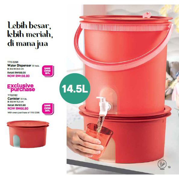 4 7 out of 5 stars 4 ratings 6 answered questions 10 days returnable currently unavailable. Tupperware water dispenser 14 5 litre for rm 105 at semenyih selangor. Tupperware round water dispenser 14 5 litres color may vary by tupperware. Can be detached for easy cleaning.