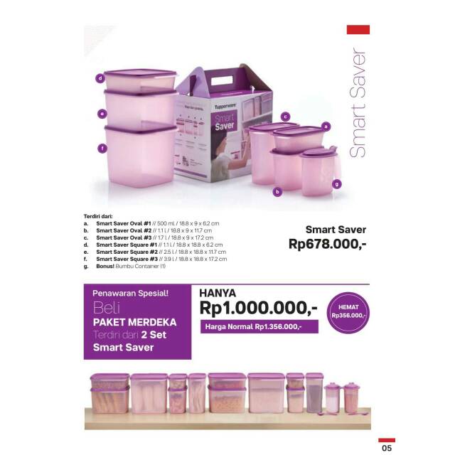 Ukuran Tupperware Smart Saver