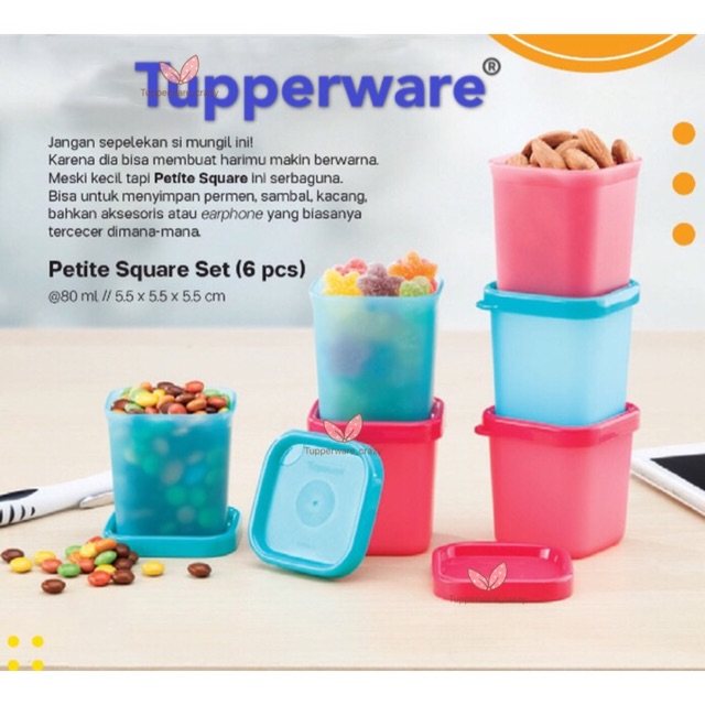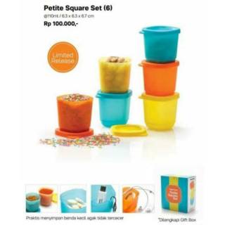 Petite square set 6 with box tupperware petite square set 6 with box harga. 1 set terdiri dari. 6pcs gift box kapasitas. 80ml 5 5 5 5 5 5 cm kegunaan.